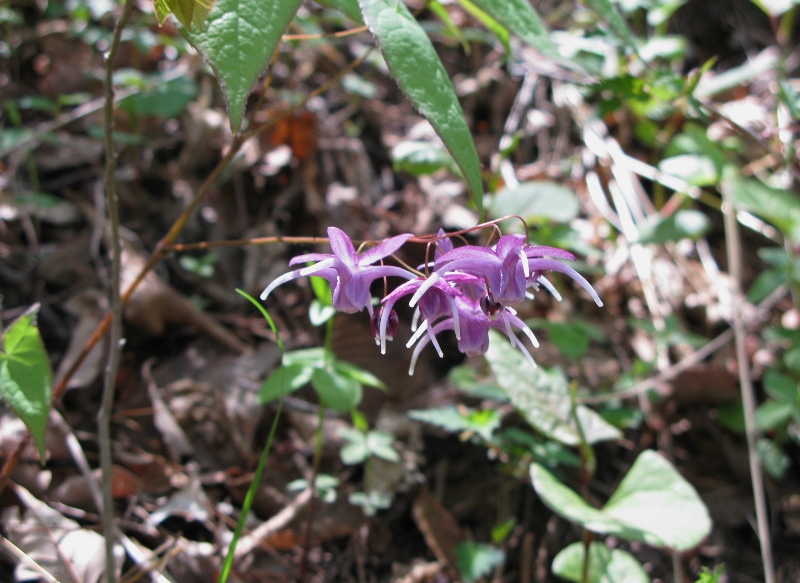 7:26発小淵沢行きを大月で乗換え田野倉8:27着。快晴の空8:35出発。踏切を渡って車道を進むと水路に架かるコンクリートの橋、田野倉尾根の入口だったが指導標も無く行き過ぎてしまう。すぐに気づき戻って橋を渡り2分ほど行くと登山道入口の標識があった。コンクリート板で蓋された水路を渡り登山道にはいる。少々藪がうるさいが踏み跡はしっかりしている。尾根道を登り植野山9:25着。時折木々の間から富士山とリニア実験線が見える。小さなアップダウンを繰り返し馬立山まで行って小休止10:15〜10:25。分岐まで戻り札金峠への急坂を下る。足元にはジュウニヒトエやスミレ、ヒトリシズカなど小さな花が咲いていた。植林帯にはいると札金峠。田野倉駅分岐を過ぎると歩きやすい道になり紺屋の休場に11:25着。トラバース道が10分ほど続き、朝日小沢への分岐がある尾根に出て岩場の急坂を登ると九鬼山12:10着。富士山は見えないがゆっくり休憩を取り12:40下山開始。落合橋分岐で真正面に富士が見える。禾生と鈴懸峠の分岐から鈴ヶ音峠への道に入る。倒木が多く展望もない尾根道を行くと伐採地に出る。恩賜林を示す杭を目印に進み開けた場所で小休止。さらにアップダウンを繰り返し高指山860m14:30着。10分間の休憩を取り鈴ヶ音峠に向かい立派な車道の通る峠に15:05着。タクシーの手配をし朝日小沢上のバス停に15:50下山。16:00に予約していたタクシーに乗り猿橋駅南口16:07到着(\2,690/台)。16:14発の快速東京行きで帰京。