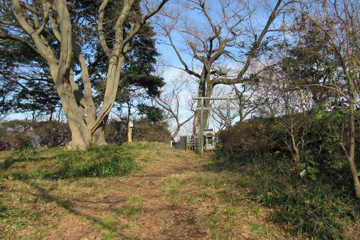 朝方交通トラブルがあるも、四方津駅に全員集合。タクシーで登山口まで入る。(2,170円/台) 不老下バス停から歩けば、結構な距離だ。天気は快晴。身支度を整え出発。杉・ヒノキの中を行く。金毘羅大権現着10:15。南西に富士が大きい。暖冬のせいか、雪は少ない。眼下に談合坂サービスエリアもみえる。尾根を登りつめ不老山着11:15。東から南面が開けていて、都心の高層ビルから桂川南面の山や丹沢の山々が望まれた。高指山の展望はなく通過。和見峠へ下る。道は急に細くなる。落ち葉を踏んで行くのは気持ち良い。切り通しの峠を経て、瀬淵山へ向かう。瀬淵山着13:35。靖國の宮の立派な社と忠魂碑がある。近くでは、ハンググライダーを楽しんでいるグループがいた。これより麓の集落に向け下山。始めはブッシュで後は急な下り坂。このコースはあまり歩かれていないようだ。桑久保バス停着14:35。行き合った登山者は1名のみ。上野原で直帰組と別れ、反省会後帰途についた。高指山〜桑久保の指導標はない。