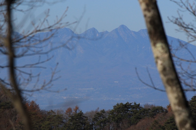 | 両神山の右肩に噴煙あがる浅間が見える |