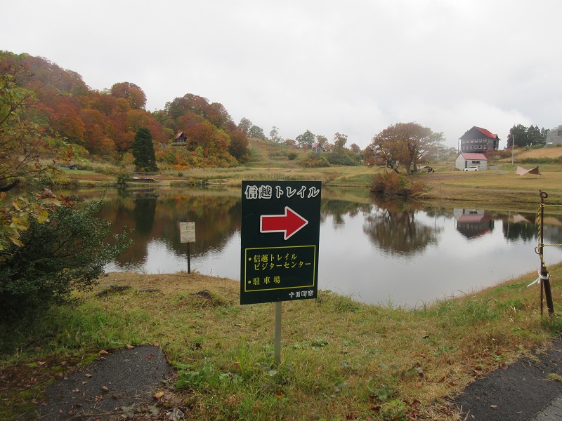 新潟の天気予報が悪く30日に順延。その為、2名が不参加になり2名での山行となる。東京7:04発とき303号に乗車。自由席はガラガラで越後湯沢8:13着。ほくほく線に乗換えまつだい駅9:01着。9:05日曜市の出ている駅前からタクシーで信越トレイルの登山口へ向かい松之山口9:32着(7,290円/台)。晴天を期待していったが雲が多く所々に青空が見える程度。数台が止められる駐車場には簡易トイレあり。トイレを済ませ9:45出発。すぐにブナ林に入り緩やかな登りで10:09森宮野原分岐に出る。紅葉が美しい尾根道を行くと足元にはイワカガミとイワウチワの葉が群生。大岩を右から巻いて急登5分でブナの大木のある天水山山頂10:34着。休憩後、キャンプ場から松之山温泉まで歩いて下ることを決め10:43下山開始。11:23登山口に戻り大厳寺高原キャンプ場へ向かう。車道を下り11:30天水越ブナ百選のブナの森入口へ。細い山道に入るとすぐにブナ林の広い道になり登って行くと草の生い茂った林道に出る。小さな案内板Eがありキャンプ場への道が案内されている。分岐ごとに案内板があり11:55大厳寺山着。晴れていたら眺望が良さそうな所だがガスっていて展望なし。案内板Aを過ぎて下ると駐車場が見え12:30キャンプ場に出る。広場にはベンチやテーブルが無いのでトイレ休憩のみで松之山温泉に下る。約7qの道をスマホの位置情報を見ながら歩き松之山温泉14:15着。温泉センター鷹の湯で入浴し15:13発のバスでまつだい駅へ出て越後湯沢16:29着。新幹線を待つ間に駅構内で缶ビールとおつまみを買って乾杯し帰路につく。