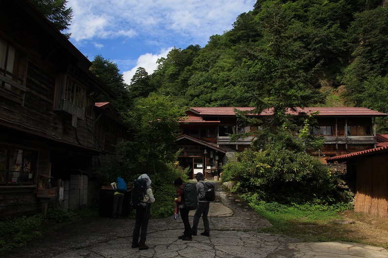 猛暑、台風の多発、高確率の発雷など全く安心できない天気予報に悩んだが、参加者の意向を確認した上で取り敢えず出発。東武鬼怒川温泉駅で集合し、10:15発の女夫渕行のバスに乗る。バスはマイクロでほぼ満席。12:08終点から歩き始める。林道から急な登りで小尾根を乗り越し、鬼怒川本流を長い吊橋で渡る。曇り空から雷鳴も聞こえ始めたので橋の所で昼食。間もなく雨が降り始める。道は多少のアップダウンはあるが緩やかに鬼怒川沿いを辿る。八丁の湯手前で雨脚が強まり、雷鳴も大きくなってきたのでしばし雨宿り。一度至近に落雷。25分ほどして雨も弱まったタイミングを見計らって出発。鬼怒川は赤濁りの激流と化していた。15分ほどで日光沢温泉に到着。この日は夜に入っても雷鳴が続いた。露天風呂などを楽しんで早めに就寝。