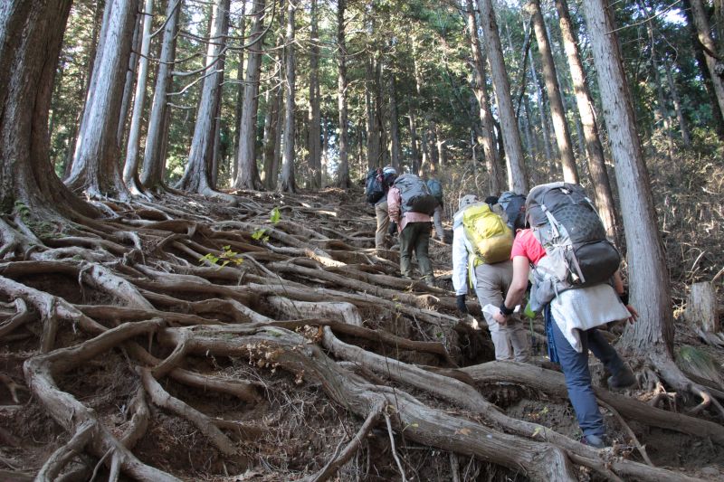 堂所山へは木の根だらけの登り(Bコース) |