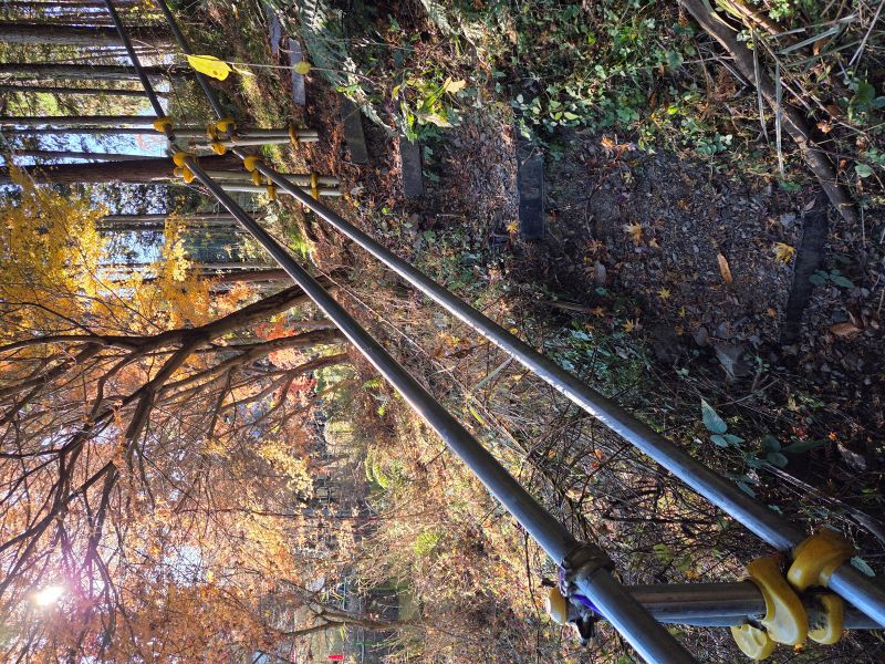 | イノシシ除けのゲートとイチョウの黄葉 |