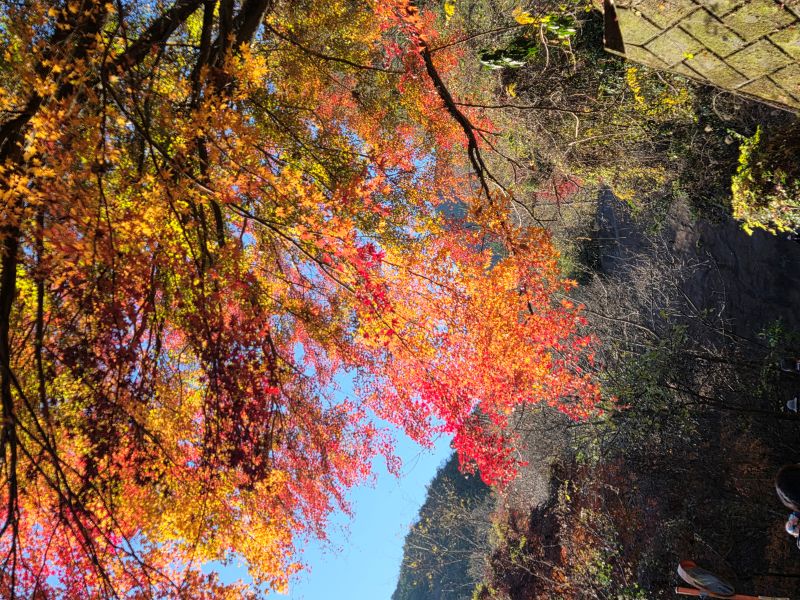 青空をバックに紅葉が映える |